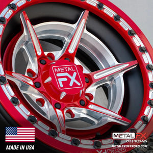 The Metal FX Offroad Bullet 6R UTV Wheel combines our technical expertise with uncompromised attention to detail creating the ultimate in style and performance. The design of the Bullet 6R includes hidden assembly bolts, a unique concave 6061- T6 Billet Center, Bead ring and Center cap. The final product is a wheel series with the style and exclusivity necessary to enhance today’s custom UTV’s. Each model in the Metal FX Offroad 6R Series is designed specifically for Can-Am Maverick R 6-Lug platforms.