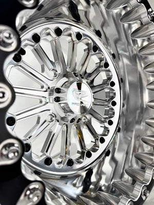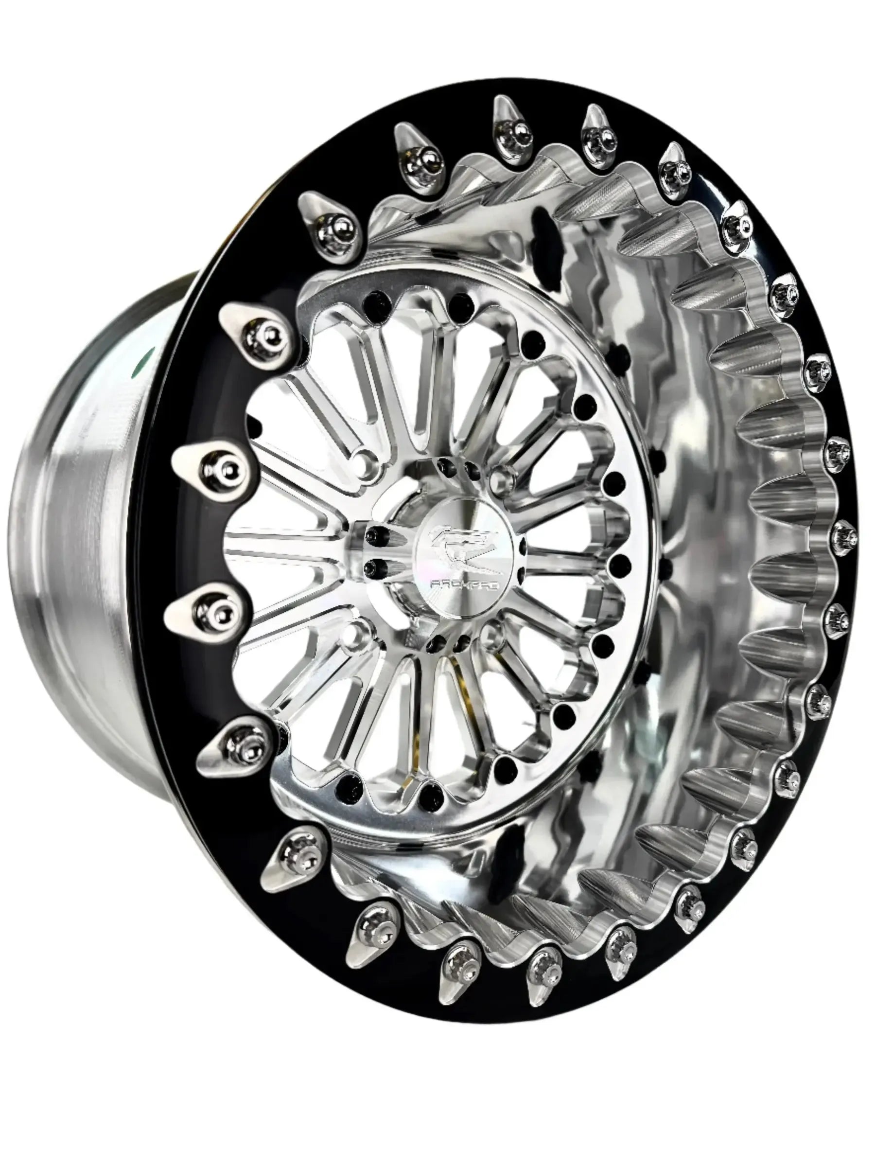 Ultralight Flow Forged Beadlock wheels are designed to work with powersports tires for offroad use only. We do not guarantee the fitment of any automotive tire. If you choose to to run an automotive tire do so at your own risk. Automotive tires may require customers to source longer beadlock ring bolts to accommodate different bead thicknesses.