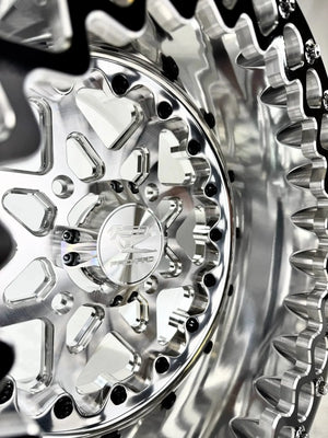 Ultralight Flow Forged Beadlock wheels are designed to work with powersports tires for offroad use only. We do not guarantee the fitment of any automotive tire. If you choose to to run an automotive tire do so at your own risk. Automotive tires may require customers to source longer beadlock ring bolts to accommodate different bead thicknesses.