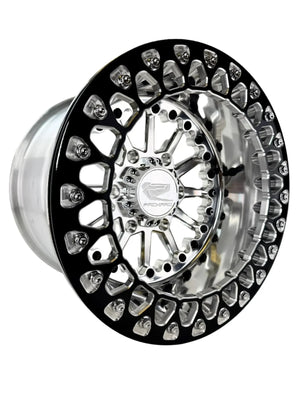 Ultralight Flow Forged Beadlock wheels are designed to work with powersports tires for offroad use only. We do not guarantee the fitment of any automotive tire. If you choose to to run an automotive tire do so at your own risk. Automotive tires may require customers to source longer beadlock ring bolts to accommodate different bead thicknesses.