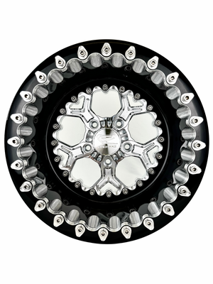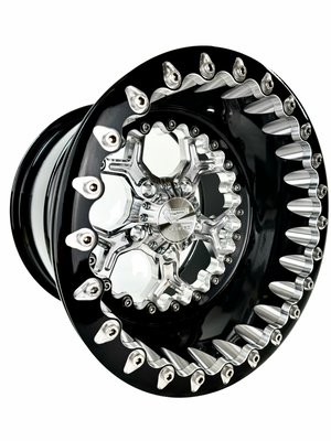 Ultralight Flow Forged Beadlock wheels are designed to work with powersports tires for offroad use only. We do not guarantee the fitment of any automotive tire. If you choose to to run an automotive tire do so at your own risk. Automotive tires may require customers to source longer beadlock ring bolts to accommodate different bead thicknesses.