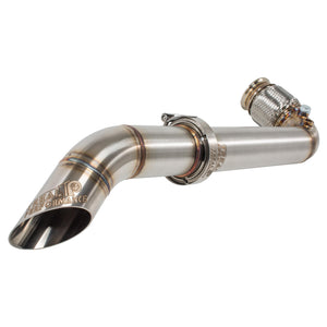 Treal Performance Full 3.0 Inch Turbo Back Ultra Race Exhaust for the Maverick X3 is designed to be our lightest weight exhaust system, with the maximum power and performance potential. This exhaust its great option for the people that want the best performance out of their machine on race day and blow the competition away. This exhaust due to its simple lightweight design it also makes it a very cost effective option. This exhaust is on our louder end of the exhaust systems we offer, but if you buy this in our Stainless rear section it is compatible with our other exhaust sections we have available for the X3 giving you the option to mix and match and have the best of both worlds.