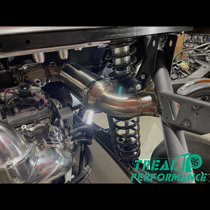 Treal Performance KOH Exhaust for the Maverick X3 is a Full 3.0 Inch Turbo Back design and is now our lightest weight exhaust system, with the maximum power and performance potential. This exhaust its great option for the people that want the best performance out of their machine on race day or for X3's that have a rear mounted spare tire, cooler, or tool box where the stock muffler use to be. This exhaust is on our louder end of the exhaust systems we offer.