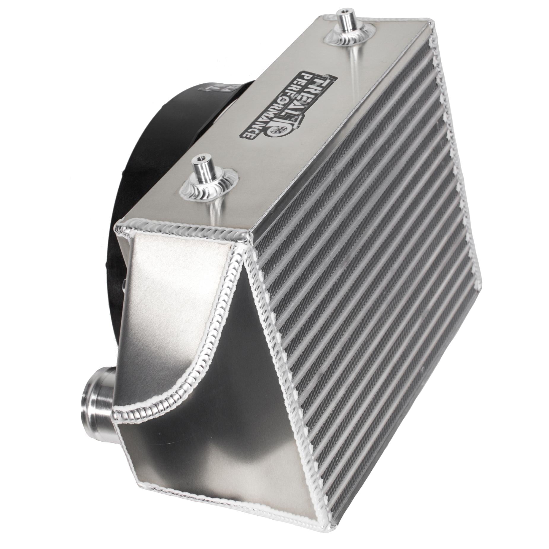 Treal Performance intercooler has been built to withstand over 55lbs of boost! No more needing to worry about the tanks coming apart like the factory ones can do! Our intercooler core uses a Bar and Plate construction with a dense louvered fin design on ambient air path and dense offset fins on charge air path for maximum cooling and performance, rated for over 450hp! Our core size is 10.25 x 12 x 3.5 inches with 15 rows vs the stock one that is only 10 x 10 x 2.25 inches and only 13 rows that’s nearing 91% bigger in cubic volume!!