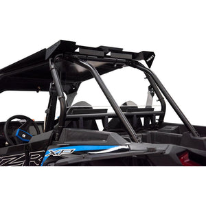 Tusk UTV Force Aluminum Roof -Laser cut from 0.10" aluminum. -Durable black powder coat. -Designed to fit stock roll cage. -Installs using billet CNC cut P clamps. -Includes foam anti-vibration gasket. -Includes all mounting hardware. -Works with or without Polaris front visor. -Works with Tusk front and rear windows. -Low profile for low trailer transportation.