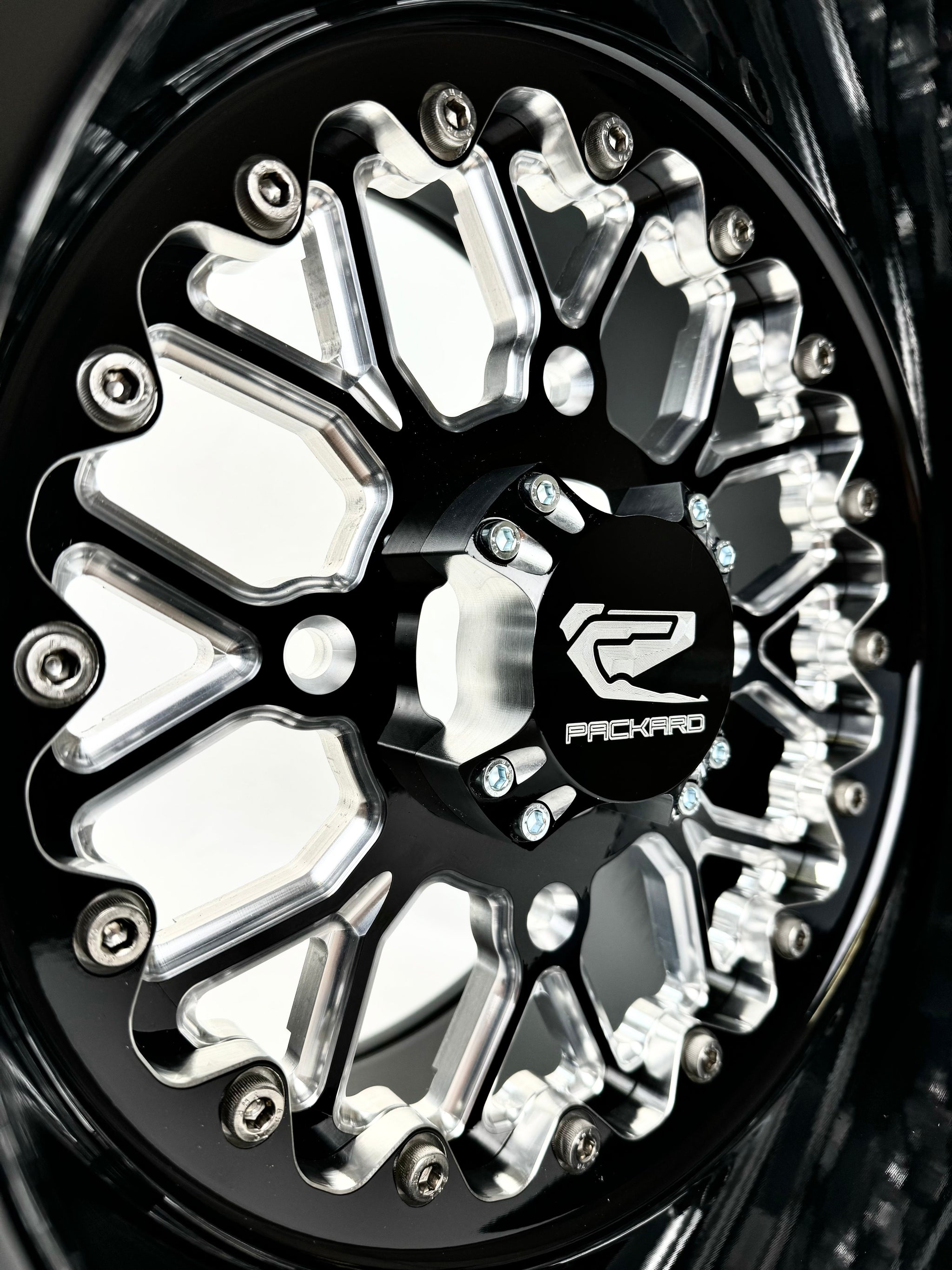 Packard Performance introduces Ultra-Light Wheels: If you want both performance and incredible looks in a SXS (side by side) wheel, look no further. These two-piece wheels are made of strong, lightweight 6061 billet centers that bolt to the wheel drum using stainless hardware.